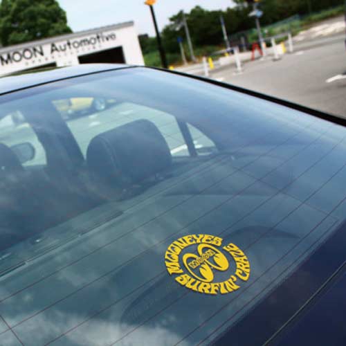 COOLなロゴの MOONEYES SURF CRAZE ステッカー! デザイン柄だけが抜けるフチ無しの「転写式」です。