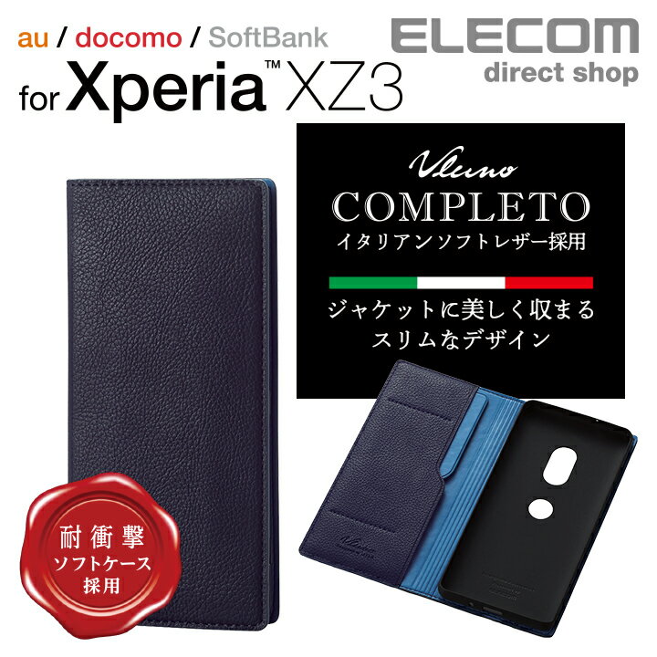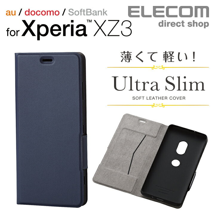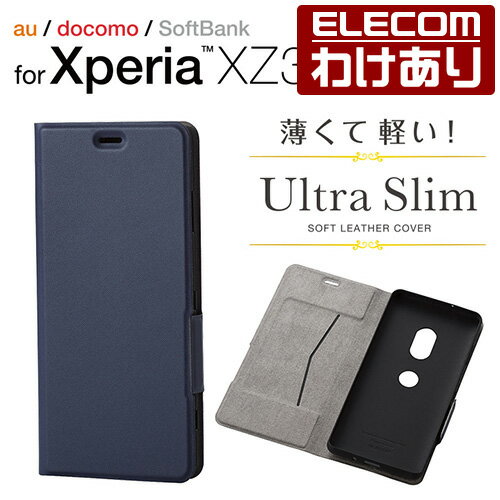 Xperia XZ3用 ソフトレザーカバー 薄型 磁石付 手帳型 スマートフォン スマホ Android ネイビー スマホケース PM-XZ3PLFUNV:PM-XZ3PLFUNV【税込3300円以上で送料無料】[訳あり][エレコムわけありショップ][直営]