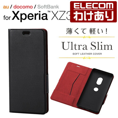 Xperia XZ3用 ソフトレザーカバー 薄型 磁石付 手帳型 スマートフォン スマホ Android ブラック スマホケース PM-XZ3PLFUBK:PM-XZ3PLFUBK【税込3300円以上で送料無料】[訳あり][エレコムわけありショップ][直営]