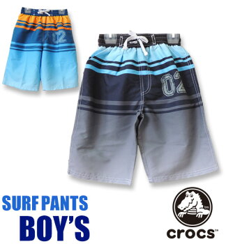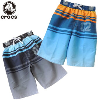【ネコポスもOK】 水着 男の子 サーフパンツ 海水パンツ 子供 ジュニア ボーダー セミロング 男子水着 ポケット付 130cm 140cm 150cm 160cm 【crocs (クロックス)】