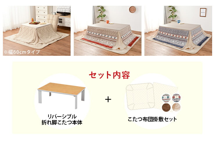 折りたたみ こたつ 3点セット 正方形 (こたつ正方形幅60cm+掛布団+敷布団)【Cube】キューブ(こたつ セット コタツ こたつテーブル こたつセット コタツセット こたつ布団セット 家具調こたつ 洋風こたつ 折りたたみ式 おしゃれ ミニこたつ こたつ セット )